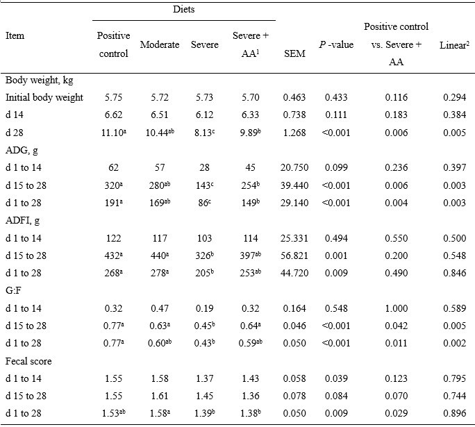 Table 1. Growth performance and fecal score of pigs fed experimental diets