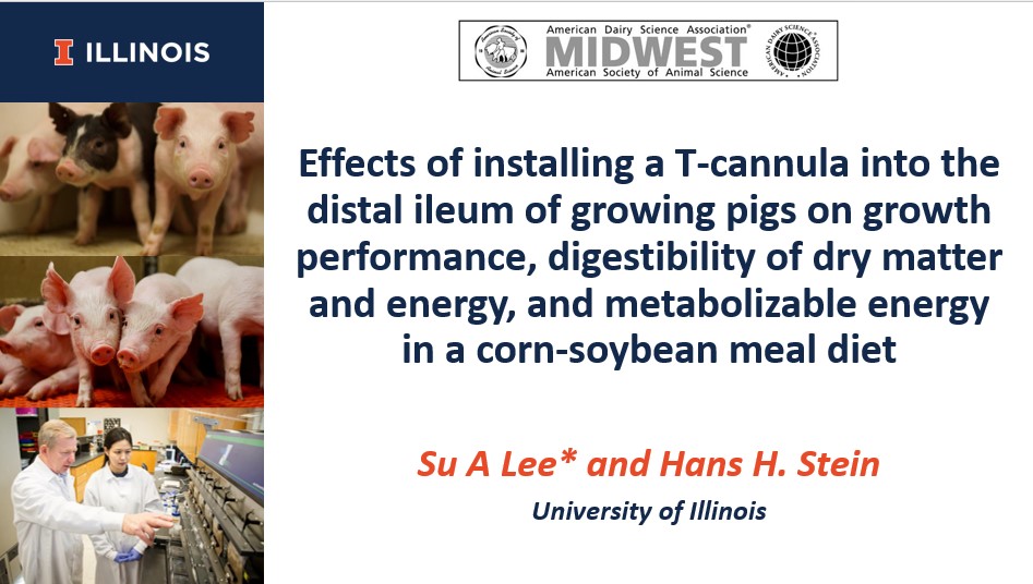 Dr. Su A Lee, Research Scientist in the Stein Monogastric Nutrition Lab, discusses the Effects of a T-cannula on growth performance, digestibility of energy, and metabolizable energy in a corn-soybean meal diet. Adapted from a presentation at the 2025 ASAS Midwest Section meeting, March 10-12, 2025.